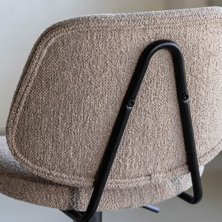 エッジの効いたスチール脚と木製の肘 置き、背のパイピングなど細部のディティールもこだわっています。