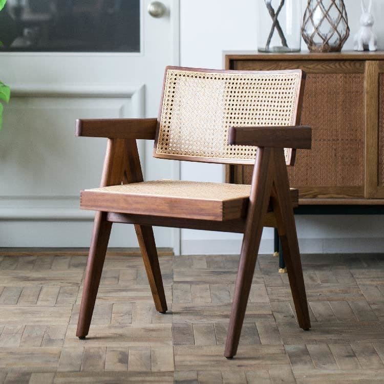 背と座には、かごめ編みで織られたラタンを使うことで抜け感のある柔らかな空間を演出します。