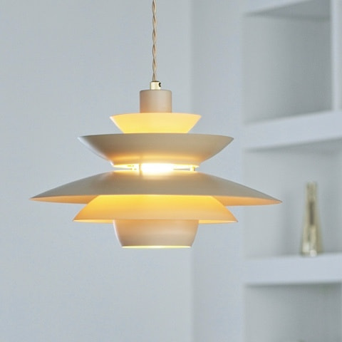 合計5枚のアルミセードが作りだす光の階層が楽しめるグレアフリーデザインのクインタペンダントライト。