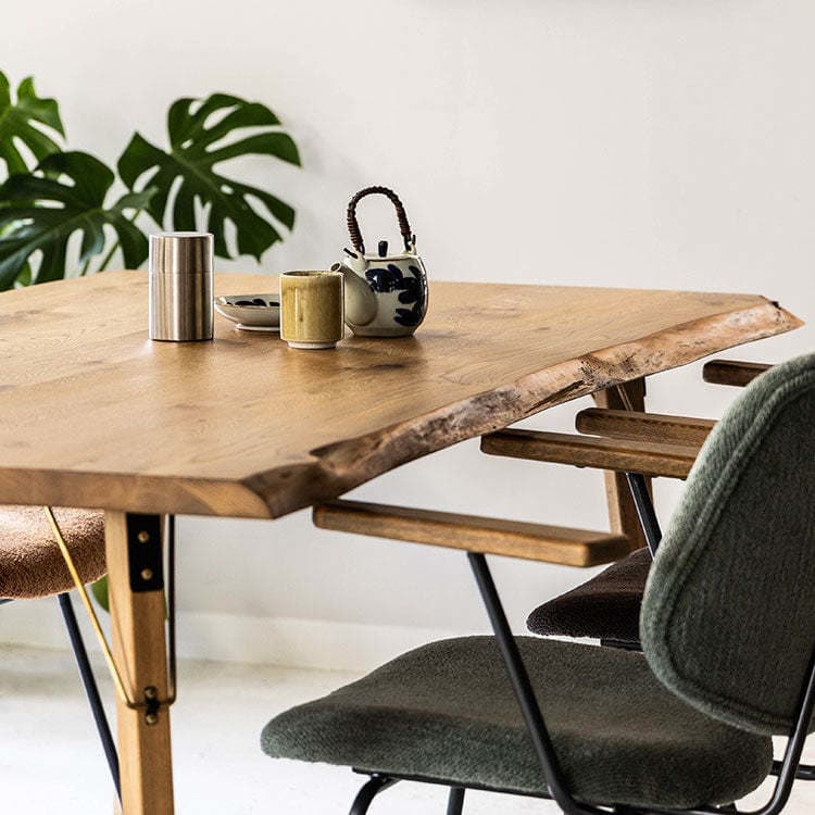- 使用している古材にはその特性と風合いを生かして表現するような加工を施しております。そのため「天板の凹凸」「補修跡」「木材の表情が一点一点異なる」「色の濃淡割れや釘穴、連結穴の跡」「板の継ぎ目が浮き出て見えるようなライン」などの特徴がございます。長年ご使用いただくことを想定して強度や構造を設計・製造しておりますので、安心してご利用いただくことができます。